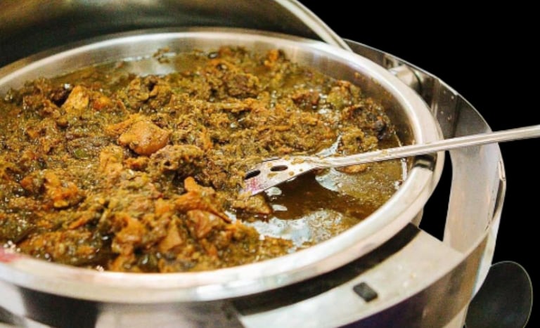 Traditional melon seed soup, served with pounded yam or rice, truly comforting.